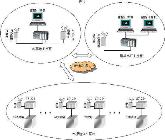 由于水源地的井分布比较分散,而且距离水源地主控室较远,所以需要建立一套比较先进的中心自动控制系统,对分散的各个井进行集中控制和管理。