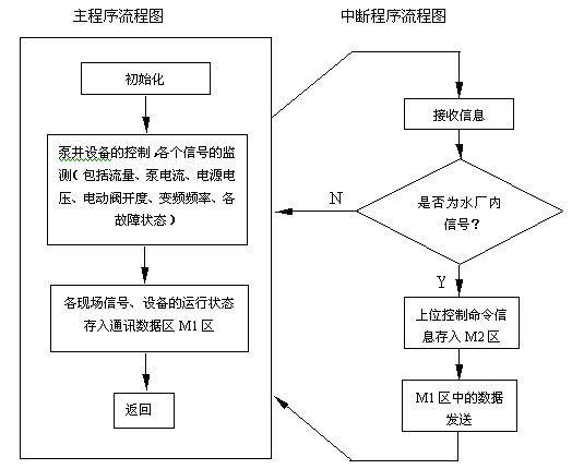 水源地主控室间隔1分钟向聊城水厂通过大功率无线电台传送水源地的水量情况及井的运行信息,20个字节,以便于上级单位的统一调控和调度;同时从聊城水厂接受上级控制站的控制信息,20个字节。