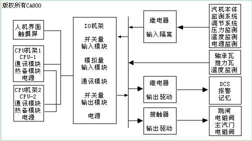 由于汽轮机保护系统的重要性,决定了该系统在任何时候不容许出现误动作或拒动作,因此作为逻辑控制单元的PLC一般选用国内外品质高、稳定性好的产品AB-ControLogix系列产品。