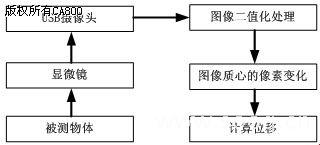 | 前言 测量物体的微小位移在许多方面如数控机床的精确加工等,有广泛的应用。目前测量物体的微小位移已经发展了多种方法:激光位移传感器测量法、电容位移传感器测量法等。本文实现了一种基于LabVIEW机器视觉软件平台和读数显微镜以及USB摄像头测量微小位移的系统。该系统成本低,操作方便,并实现了计算机的实时动态测量。由美国NI公司推出的LabVIEW是目前最流行、应用最广、发展最快和功能最强的图形化数据软件[1-4]。NI公司推出的机器视觉平台是专门的图像处理软件平台。本测量系统采用LabVIEW和机器视觉软件平台编程控制USB摄像头采集读数显微镜的物体图像移动,通过计算机判断物体图像的像素移动来计算物体移动的微小位移。整个实验过程中,图像采集和数据处理都是通过LabVIEW软件编程实现。由于摄像头的帧速为30帧/秒,因此可实现动态测量、÷像o实时显示结果并将数据实时保存。 1 实验原理和思路 通过读数显微镜的放大作用把物体发生的微小位移放大,利用摄像头拍摄物体放大的图像,用计算机对图像进行二值化处理,通过移动前后图像质心位置像素点的变化可计算出物体位移的变化。图1是实验原理和测量流程图。 ![]() 图1 微小位移测量实验原理图 实验思路如下:读数显微镜底座的LED发射出均匀稳定的光,照射到显微镜载物台的玻璃片上。物体的移动牵引显微镜物镜下的细丝产生微小位移,这里,细丝的位移就是物体的位移。显微镜对细丝成一个清晰放大的像,被置于目镜上的USB摄像头采集到图像并将图像传到计算机进行处理。计算机对采集到的图像先进行二值化处理,滤去背景图像的影响,计算出图像质心的位置。通过比较前后图像质心的位置坐标,可计算出质心移动的像素点。实验中通过多次测量,先得出图像单位像素点和物体实际位移的比例系数。实际测量物体的位移时,通过计算出图像质心像素点的变化,再乘以单位像素点的变化与物体实际位移的比例系数,计算出物体的实际位移。 实验中使用的实验仪器和装置包括:读数显微镜(型号为:JCD-Ⅲ,上海光学仪器厂)。实验中显微镜的目镜×10,物镜×10,对细丝的放大倍数为100倍。摄像头:普通罗技快看高手版(罗技公司),摄像头的分辩率 320×240,30万像素,拍摄帧速为30帧/秒。细丝为精确加工的黑色细丝,直径约为。 |