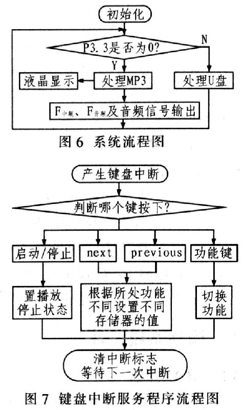 与硬件电路功能配合,系统软件设计流程如图6所示;键盘中断服务程序流程如图7所示。