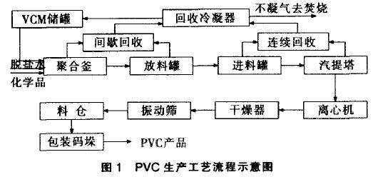 聚合反应是在带搅拌和带夹套的聚合釜中进行。该反应在各种化学品的作用下将游离的氯乙烯单体在指定的温度下聚合生成聚氯乙烯颗粒。该装置采用了热态同步进料技术,进料的各组分的热量分布均按照配方严格计算,进料结束时的釜温接近或达到聚合温度,无需升温,直接进入反应过程。