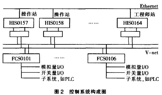 该系统包括6台控制站(简称FCS)。1台工程站(简称EWS)、7台操作站(简称HIS)。EWS用于系统组态与调试;操作站作为系统与操作员之问的人机接口,具有监控全装置的能力:控制站具有双重化冗余结构的现场控制单元(简称FCU)、I/0模件和通讯模件。