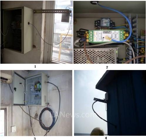 取而代之的是在控制室和堆取料机驾驶室的无线收发系统(如图1-4依次为控制室收发器及天线、控制室收发器、堆取料机驾驶室及堆取料机驾驶室天线)。