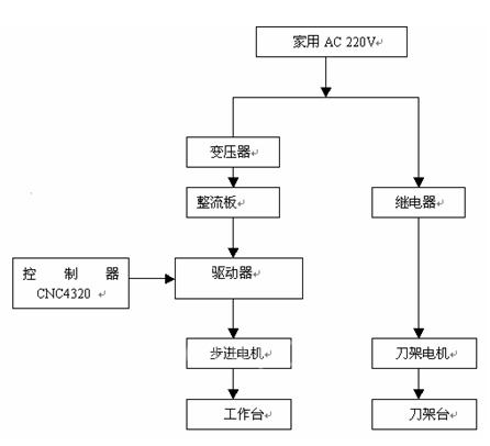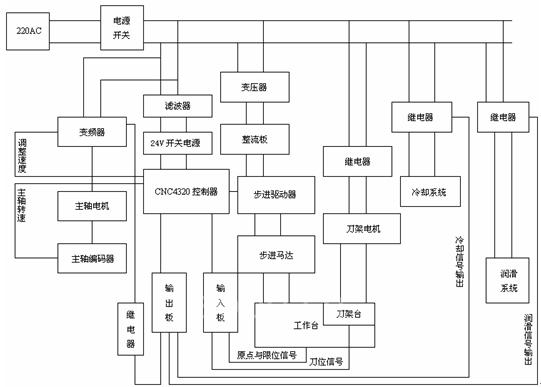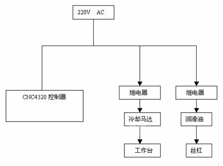 辅助控制系统由4个部分组成:控制器CNC4320,冷却液喷头,针阀滴油油杯,继电器。