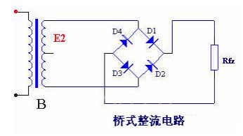 桥式整流电路的工作原理如下:e2 为正半周时,对D1 、D3 和方向电压,Dl,D3 导通;对D2 、D4 加反向电压,D2 、D4 截止。电路中构成e2 、Dl、Rfz 、D3 通电回路,在Rfz ,上形成上正下负的半波整洗电压,e2 为负半周时,对D2 、D4 加正向电压,D2 、D4 导通;对D1 、D3 加反向电压,D1 、D3 截止。电路中构成e2 、D2 Rfz 、D4 通电回路,同样在Rfz 上形成上正下负的另外半波的整流电压。