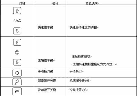 其机床面板上面的按键的含义如表1.5-a所示: