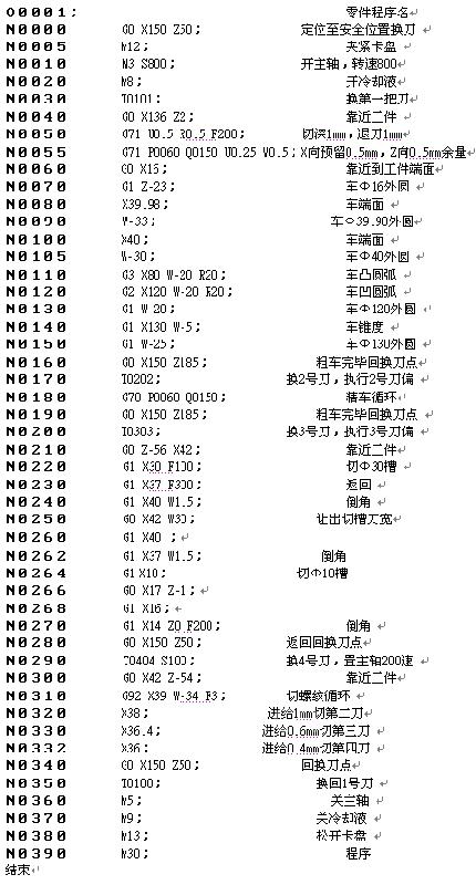 根据机械加工工艺及本说明书的指令解释,建立图 所示的工件坐标系,编辑程序如下: