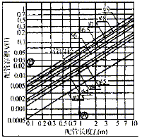 已知各支路配管内径D为f7.5mm ,管长L为2m,查图2得出配管容积V为0.0881。查图3得出配管的有效截面积S为25mm2。