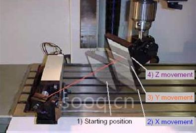 当用一台在线检测的机床时,用一适当的测头来代替刀具,以测量工件的尺寸。其空间定位误差可以列成误差表或补偿表,以使软件纠正所测量测头的位置。用了空间误差纠正,机床本身的几何误差及定位误差可以被消除,提供精确的尺寸测量。因此,满足了4:1量规的精度要求,使带有空间误差补偿的数控机床可以具有三坐标测量机同样的高精度功能。