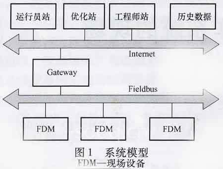 本设计所设计的嵌入式网关的主要功能是实现WorldFIP现场总线和Internet之间的相互通信时的协议转换,从而实现工业控制中管理层和现场控制层之间的无缝结合,使得WorldFIP现场总线成为一个真正开放的工业控制网络。控制系统模型如图1所示。