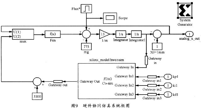 在对数字控制系统仿真运行协同仿真之后,就会生成新的数字PID模块。然后把它重新接入数字控制系统仿真框图中,就会得到如图9所示的硬件协同仿真系统框图。
