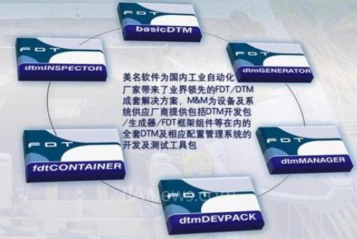 现场设备工具(Field Device Tool)是一种标准的接口规范,该技术提供标准的方法来管理现场设备。为了实现先进的设备管理,设备生产商需要研发设备的用户接口,所有的设置和通信信息在设备类型管理(DTM)程序中进行。FDT是真正的开放性技术,与仪表或系统供应商无关,与仪表类型无关(传感器、执行器、远程I/O等),与通信协议类型无关(支持工业以太网、HART、PROFIBUS、FOUNDATION Fieldbus等),不用考虑现场总线协议、设备生产商和具体的设备类型,就可以很容易的表示设备数据。美名软件为国内工业自动化的客户带来了业界领先的FDT/DTM成套解决方案,我们为设备及系统供应厂商提供包括fdtCONTAINER,dtmINSPECTOR,dtmMANAGER,dtmGENERATOR等在内的全套DTM及相应配置管理系统的开发及测试工具包。