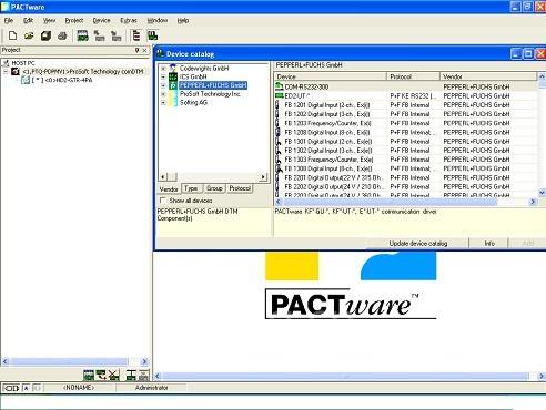 1. 启动 FDT 程序,然后按网络管理员登录。下面的过程是使用 PACTware 3.0 软件的情况。