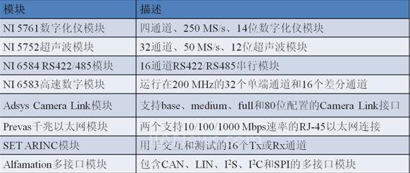NI最新发布了基于PXI Express的——NI PXIe-7961R、NI PXIe-7962R、NI PXIe-7965R。三款NI FlexRIO FPGA模块集成了针对数字信号处理应用的高性能Xilinx Virtex-5 SXT FPGA与高达512 MB的板载DRAM,详细信息见表1。您可以将它们作为独立协处理器使用,将计算负荷从主处理器移到FPGA上,在主处理器和FPGA之前平衡运算负担,从而取得更优的系统性能。NI同时还发布了多个NI FlexRIO适配器模块,为FPGA提供了灵活的I/O。NI FlexRIO FPGA模块的用户可以结合使用这些提供了高性能模拟或数字I/O的适配器模块,创建基于FPGA的仪器。