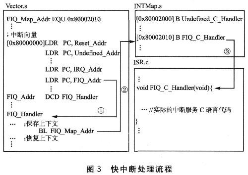 可以通过图3看出快中断的处理流程(其他的中断处理流程类似)。