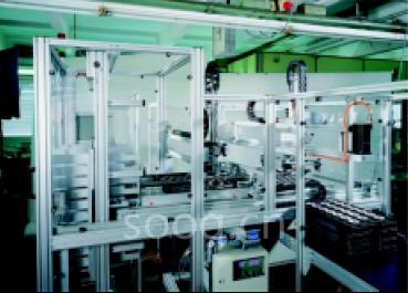 在唇膏的自动化装配和检测中,在手机电池的自动化测量中,在药品等的自动化包装和贴标,在给数控机床上下料,在粉末压铸行业,在各种仪表的分类、装配和检测等行业都涉及到大量小零件的搬运工作。在这类应用中的一个特点就是零件小,数量大,表面要求高。为此人们设计小型拖盘专门装特定的零件,一次装的数量大,零件间严格分开,便于运输。由于具体应用不同,这类机器人的结构也差异很大,但原理几乎相同,所有本文以德国Berger Lahr公司的RMS 600为例来介绍这类供料机构。