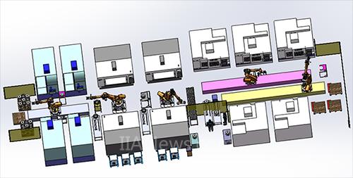 该项目为轮边减速器壳系列机加工自动生产线,实现轮边减速器壳撤垛、车削、钻削1、钻削2、装配、复合加工、拆卸重装、打标、码垛9道工序。