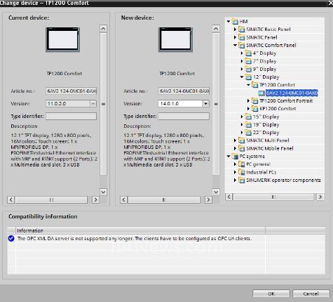 如果项目中包含老设备,那么必需更改这些设备到当前设备(精智面板,二代精简面板等)。介绍信息可在手册以下位置找到 “SIMATIC STEP 7 基本/专业 V15 和 SIMATIC WinCC V15" (条目 id 109755202) 在章节 "可视化过程 -> 使用全局功能 -> 替换设备"。