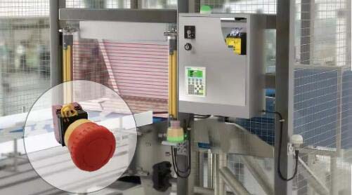 设计一些带有传动部位的机器时必须要加上急停按钮这个元件,以防止机器传动部位直接或间接对人体产生伤害,急停按钮一般安装在方便工人操作的机器控制面板,且不能有任何遮挡物存在。