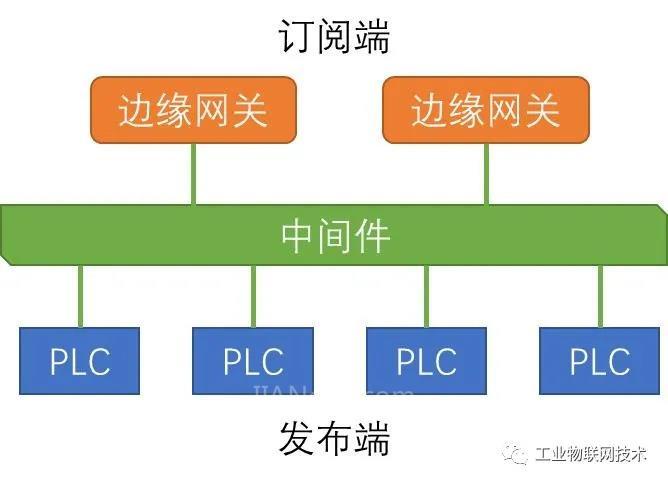 此时作为发布端的每个PLC只需要配置好与中间件的连接,并设定好一个“话题”,而作为订阅端的边缘网关,同样只需要连上中间件,即可在相应的“话题”下获取到对应数据。
