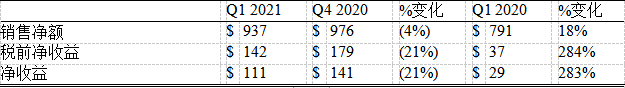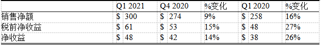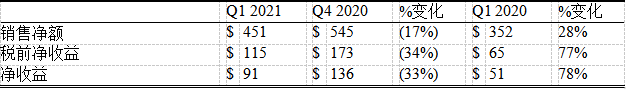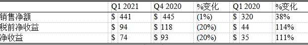 2021年第一季度业绩与历年比较