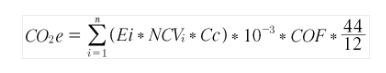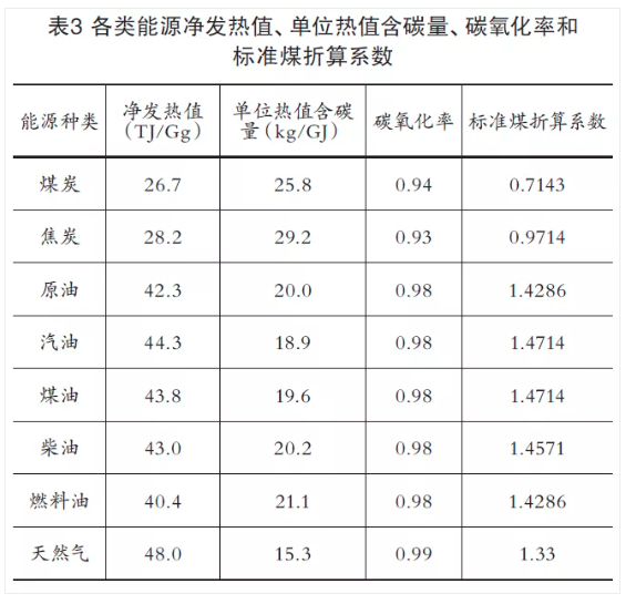 公式中CO2e,为二氧化碳排放量,Gg;Ei表示第i种能源消费量,kgce;NCVi为第i种能源净发热值,TJ/Gg;Cc为单位热值碳含量,吨C/TJ;COF为碳氧化因子,该值为1,表示碳完全氧化;i=1,2,3…表示i种能源。