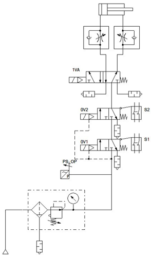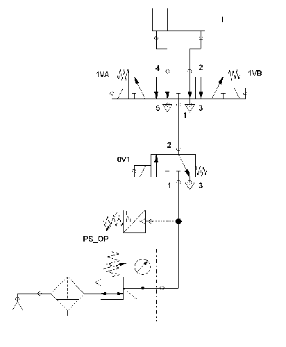 Ø 气缸的运动由控制阀0V1和1VA/1VB控制