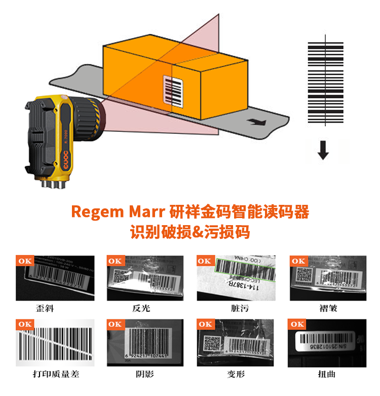 读码专家Regem Marr研祥金码是解决各行业用工难、降低成本,实现利润最大化的得力助手。同时,作为一家机器视觉行业国家标准制订单位,Regem Marr研祥金码自主研发的读码器,拥有业内领先性和创新性技术超30余项,助力企业实现超远距离、超广视野、自适应大景深、超高速快读码、高精度解小码等读码需求,解决各行业领域的读码难题,完美的演绎地表最强“码”王,客户投诉零机会。