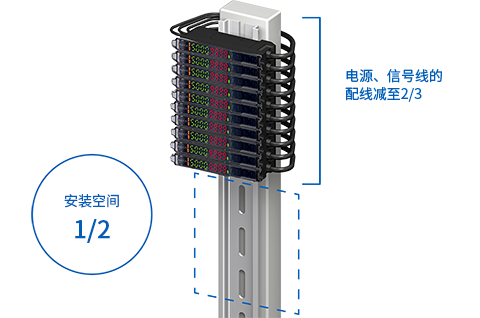 使用双通道型光纤放大器E3X-MZV,配线数量由60根降至40根,安装空间减至1/2,配线工时减少至2/3,不仅可以节省安装空间,还可以大幅缩减耗电量与配电工时。