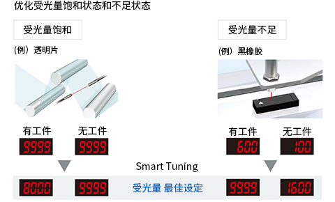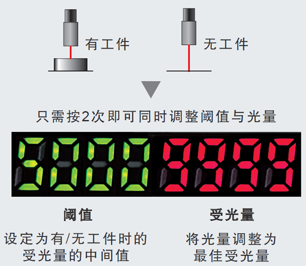 一个步骤即可完成最佳设定,不受检测物及安装条件影响,避免因操作人员不同产生的差异,免去复杂的调试,节省工时。