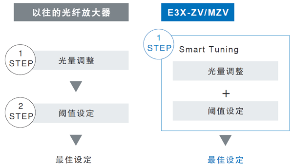 欧姆龙新光纤放大器精选出有无检测所需的功能与性能,优化构件与制造工序,同时运用新技术以实现高性价比,E3X-MZV即使大量使用也不会增加设备成本负担。