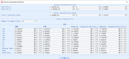 c) 应力线性化:此处必须输入采样点数量,并且可以通过计算按钮开始计算等效膜应力和弯曲应力。可以使用“结果”按钮在Mentat菜单中查看最终结果,也可以使用“打开报告”按钮在默认编辑器中打开文本文件(扩展名.rpt)。