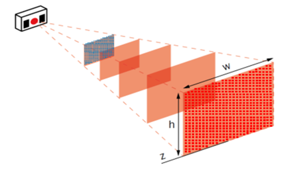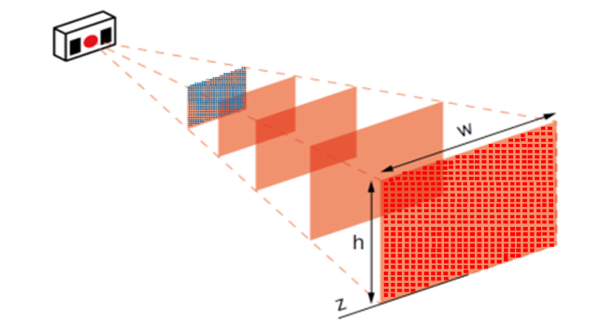 借助三维时间飞行原理技术,Visionary-T 可在单帧三维图片中检测超过 217,000 个像素点。每个像素点均包含了光信号在传感器与摄像机之间的飞行时间。借助发射光信号与反射光信号之间的时间相位差测得飞行时间,从而算得摄像机与物体之间的距离。