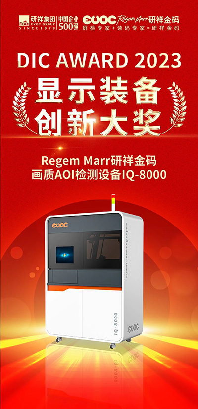 近日,DIC AWARD 2023国际显示技术创新大奖获奖名单公布,Regem Marr研祥金码画质AOI检测设备IQ-8000凭借前沿AI技术、卓越的产品性能,荣获“显示设备创新大奖”!