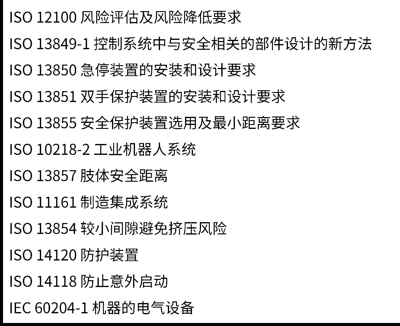 如ISO 13854 最小间隙人身挤压, ISO 14118防止意外启动;