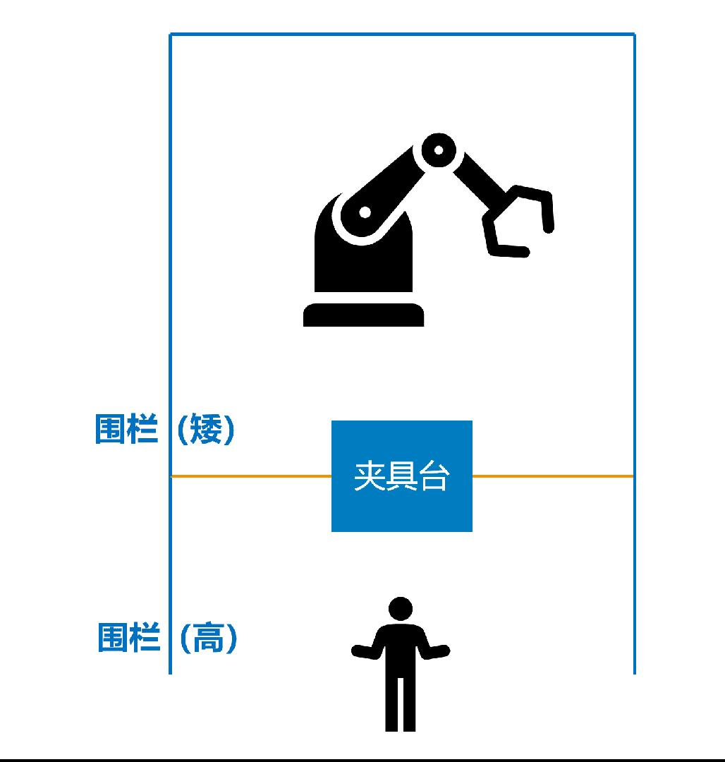 由于操作人员可以站在安全光幕和夹具台之间的间隙,所以此时光幕自动复位后,机器人运动对人也会产生伤害,所以对间隙需要增加额外的检测装置,比如安全扫描仪,以防止机器人非安全启动。