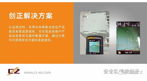 解决方案:采用功率耗散法测算产品最高表面温度组别,无论是更改元器件配置方案还是选装客户产品,均可通过科学计算均可获得真实安全可靠的温度组别。