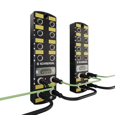 现场总线:施迈赛开发的“安全现场接线盒”系统可在现场连接多达 8 个不同类型的安全开关设备(电磁安全锁、安全传感器、具有急停功能的控制面板、安全光幕等)。这有助于降低成本,特别是当机电和电子终端设备仅占用单个设备连接时。安全和操作信号均被捕获并通过即插即用方式连接到更高级别的控制模块,例如安全 PLC。