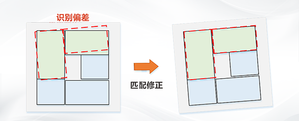 面对产线上出现的异常断电等情况,系统中支持视觉续码,快速恢复生产状态。通过对已码包裹位姿与预设的垛型的匹配,确认当前状态并引导准确续码。同时垛型匹配时会将视觉识别到的偏差进行分析,修正垛型栈板,保障现场柔性生产。