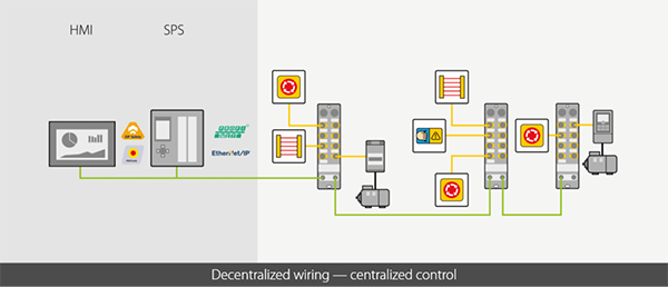 在集中式安全系统中,机器扩展可能要求进行复杂的接线以及额外的控制柜。而利用基于以太网的分布式安全技术,可在无控制柜的情况下持续实施模块化概念。利用模块化原理,机器和设备的扩展将显著简化。
