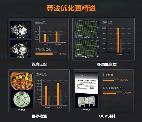 VM4.4对模板匹配、Blob、目标检测、OCR、图像处理、读码等多个算法工具进行了效率提升和性能优化,基于海量工业场景数据,推出了通用识别模型,无需二次训练,能直接满足大多数工业场景的检测需求。