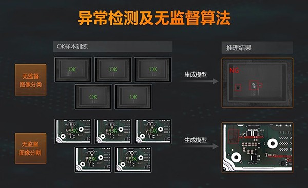 面对缺陷检测初期样本稀缺,导致模型学习无法稳定收敛的挑战,VM4.4创新推出AI异常检测类算法工具。通过集成无监督图像分类与无监督图像分割算法,用户仅需提供少量正常样本,就能快速准确地识别异常缺陷,大大加速模型收敛过程,显著缩短项目落地时间。