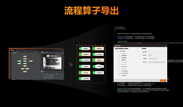 为进一步降低二次开发难度,VM4.4新增算子导出功能,开发者可以把搭建好的VM图形化方案导出成算子接口级的调用代码,帮助用户更快理解VM的算子开发逻辑,同时减少编码量。