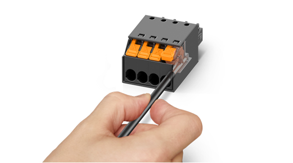 XPC连接器免处理导线,省去压线环节,大幅提升接线效率,只需插入导线触发弹簧机构,即可轻松完成接线。