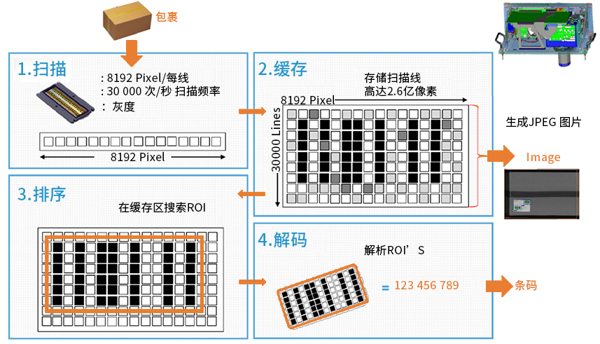数据输出,图像处理完成分析条码信息后,将条码信息转为为计算机所能读懂的语言将数据输出。
