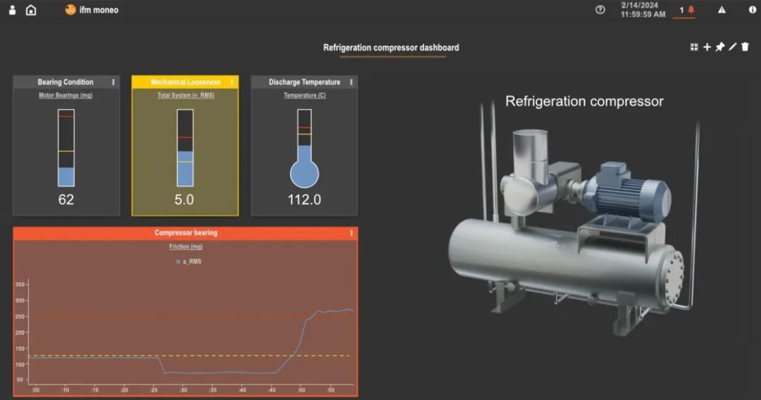 moneo用于制冷压缩机的实时维护监控,关注的关键指标有: