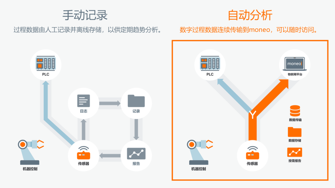 ifm的IIoT平台——moneo,正是为应对这一挑战而设计。它不仅释放了传感器的深层潜力,更将这些数据转化为推动企业增长的催化剂,确保每一字节的数据都能在业务决策中发挥其最大价值,助力企业在数字化的浪潮中乘风破浪。,时长00:53moneo作为一个用户友好的无代码工业物联网(Industrial IoT,下文简称IIoT)平台,集成算法支持对许多关键工业机器进行预测性维护,赋予用户在工厂紧急情况发生前自主应对的能力。它支持直接通过控制器使用过程数据,以低成本而高效的方式,将IT与自动化技术从传感器端延伸至云平台,并将您的传感器数据转化为有价值的见解。通过ifm的IIoT平台moneo,如何多维度解锁数据潜藏的巨大潜力?01提升设备可用性