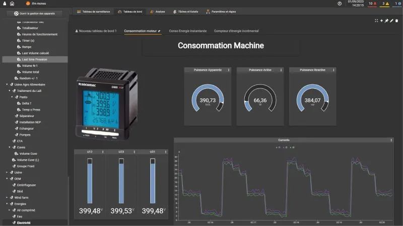通过监控机器级别的能源消耗来降低运营成本,优化包括压缩空气管理、泵/电机效率提升、供热系统智能调控以及冷却系统精细管理在内的各环节能耗。