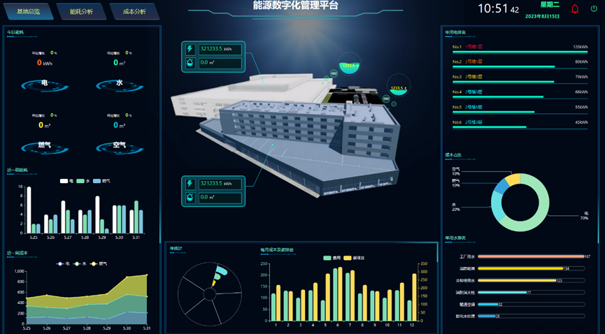 雷达图主要用于表现多变量的数据,比如各个区域的能耗分析。雷达图以其独特的形式将多个指标呈现在一个图形中,形成了一个多边形的边界。每个指标对应于多边形的一个顶点,用来判断同一个对象的多个指标之间的强弱和差异。